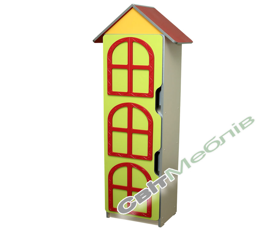 Стінка виготовляється з ламінованої ДСП товщиною 16 мм. Задня стінка виготовляється з білої односторонньої ХДФ товщиною 2,5 мм. Фасад оклеюється крайковою стрічкою ПВХ товщиною 1 мм кольору "алюміній". Інші частини оклеюються крайковою стрічкою ПВХ товщиною 0,5 мм кольору "алюміній". Фасади оздоблюються тематичними МДФ накладками червоного кольору.