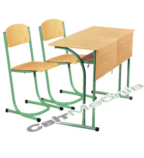 Комплект: стіл учнівський 2-місний з полицею, №4,5, 6 + стілець, №4, 5, 6.