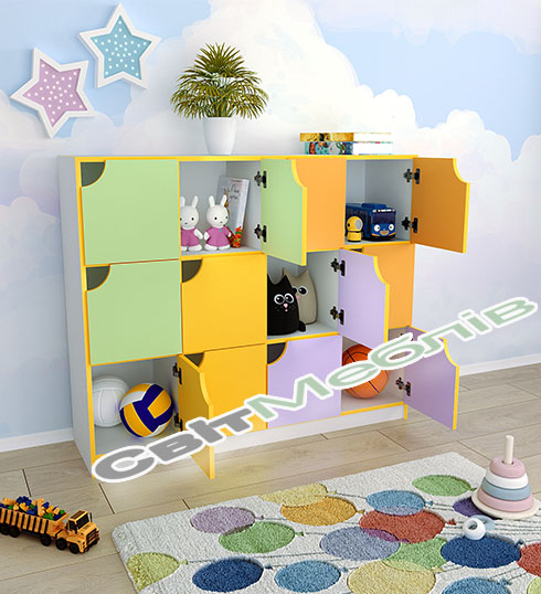 Шафа чудово підходить для дитячих садків. Розміри шафи 1300*320*1040 мм. Усі матеріали підтверджені сертифікатом якості.