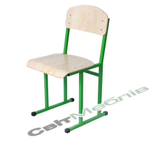 Сидіння та спинка виготовлені з гнуто-клеєної фанери (товщиною 8-9 мм) та вкриті безкольоровим лаком на водній основі. Кути сидіння і спинки та передня крайка сидіння мають радіус заокруглення для запобігання травмування. Каркас стільця виготовлено з квадратної труби 20х20х1,2 мм з нанесенням порошкової фарби. Спинка та сидіння до каркасу кріпляться гвинтами та гайками. На торцях каркасу закріплені пластикові наконечники, які запобігають травмуванню учнів та пошкодженню підлоги.