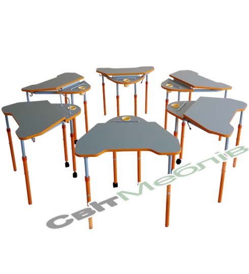 Рухома частина стільниці, зі сторони учня, має виріз, що сприяє правильному розміщенню учня, та запобігає виникненню сколіозу.