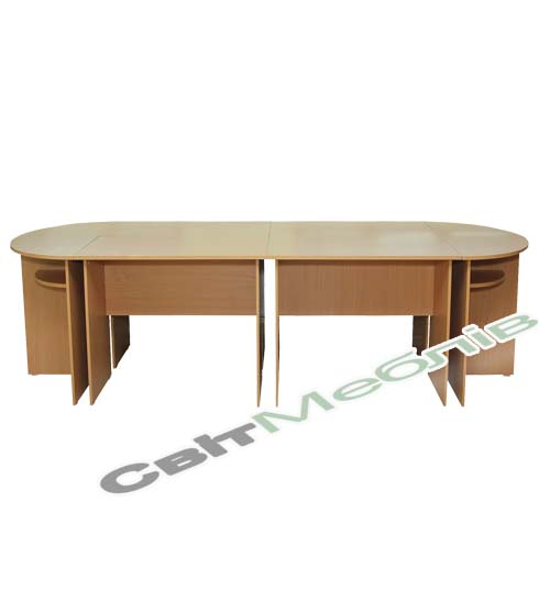 Комплект складається з 4-х письмових столів без полиці 4105 та 4-х кутових заокруглених столів 4111.