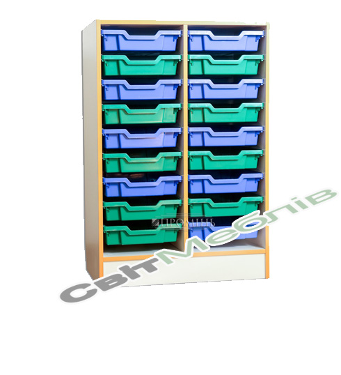 Шафа комплектується пластиковими шухлядами розміром 312х427х75 мм (18шт.). Шухляди встановлені на спеціальних направляючих.