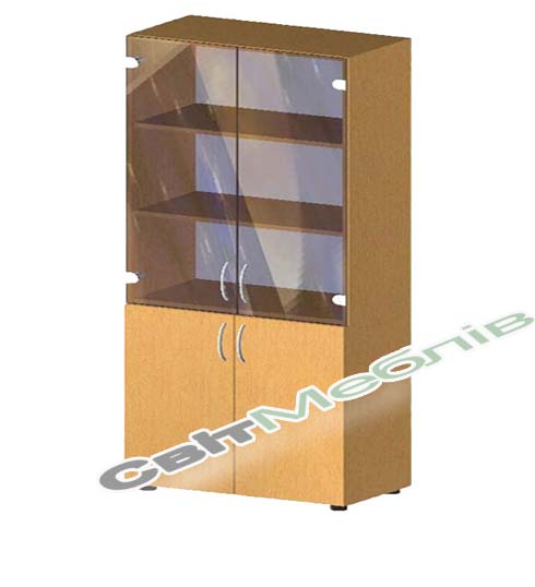 Шафа для книг 4-дверна на 5 полиць з верхніми скляними дверима тонованими. Габаритні розміри: 700х347х1825мм.